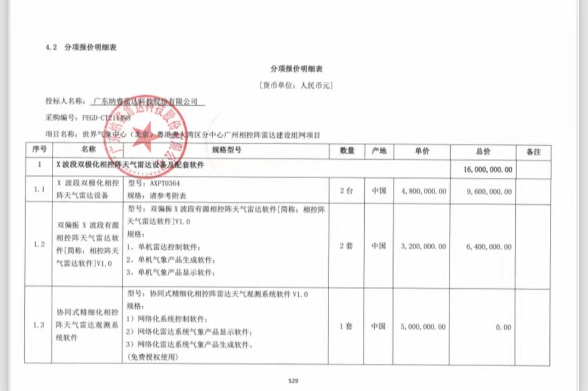 合同包1(世界氣象中心(北京)粵港澳大灣區(qū)分中心廣州相控陣雷達建設組網項目):