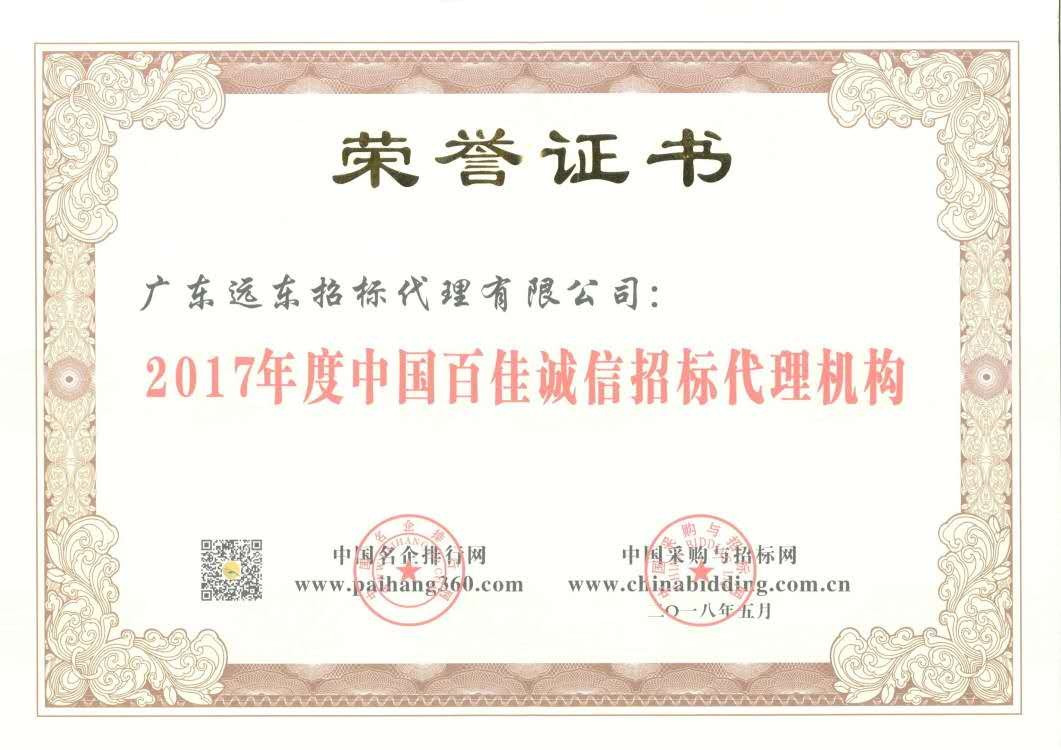 2017年中國(guó)百佳誠(chéng)信招標(biāo)代理機(jī)構(gòu)